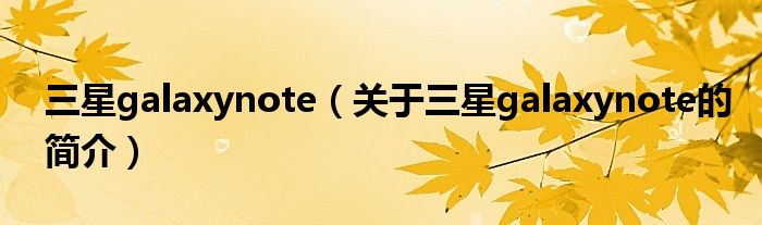 大家好,三星galaxynote,關于三星galaxynote的簡介很多人還不知道,現在讓我們一起來看看吧!