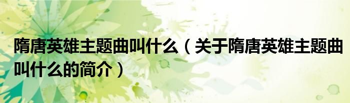 本文關于隋唐英雄主題曲叫什么的簡介就講解完畢,希望對大家有所幫助。