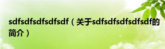 本文關于sdfsdfsdfsdfsdf的簡介就講解完畢,希望對大家有所幫助。