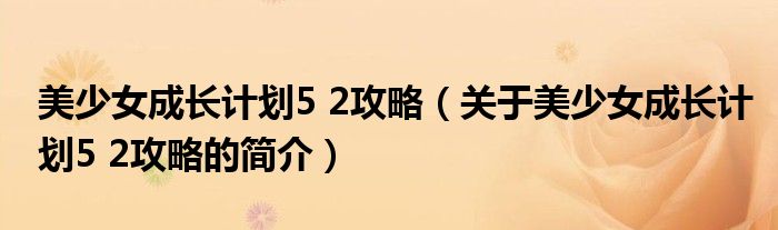 本文關于美少女成長計劃5 2攻略的簡介就講解完畢,希望對大家有所幫助。