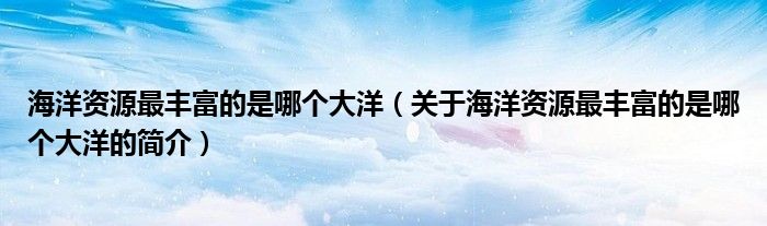 本文關于海洋資源最豐富的是哪個大洋的簡介就講解完畢,希望對大家有所幫助。