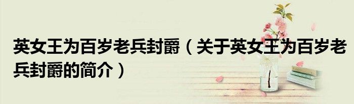 本文關(guān)于英女王為百歲老兵封爵的簡介就講解完畢,希望對(duì)大家有所幫助。