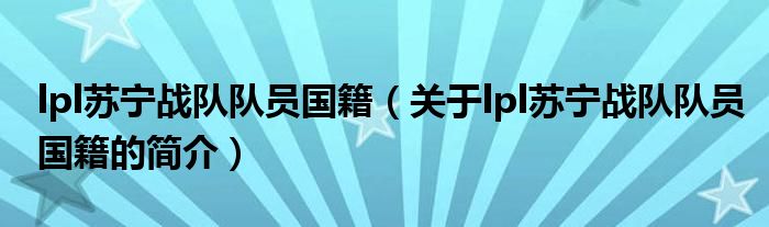 大家好,lpl蘇寧戰隊隊員國籍,關于lpl蘇寧戰隊隊員國籍的簡介很多人還不知道,現在讓我們一起來看看吧!