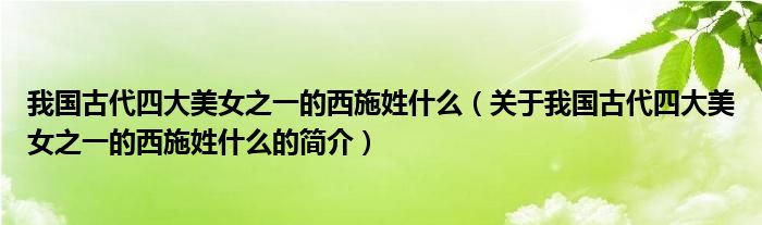 本文關于我國古代四大美女之一的西施姓什么的簡介就講解完畢,希望對大家有所幫助。