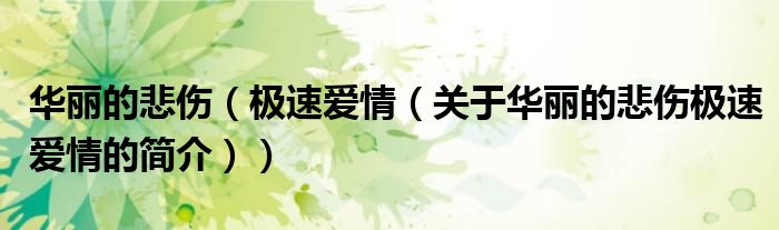 本文關于華麗的悲傷 極速愛情的簡介就講解完畢,希望對大家有所幫助。