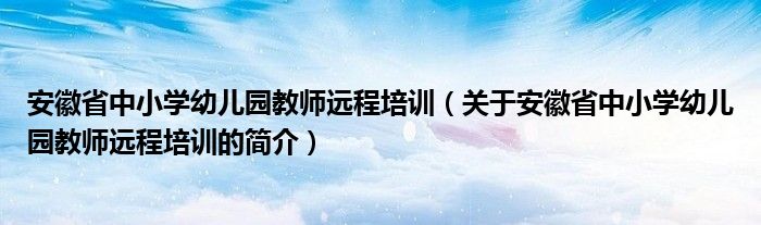 本文關于安徽省中小學幼兒園教師遠程培訓的簡介就講解完畢,希望對大家有所幫助。