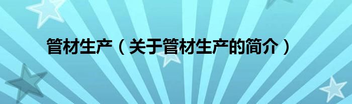 本文關于管材生產的簡介就講解完畢,希望對大家有所幫助。