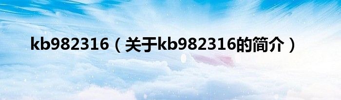 本文關于kb982316的簡介就講解完畢,希望對大家有所幫助。