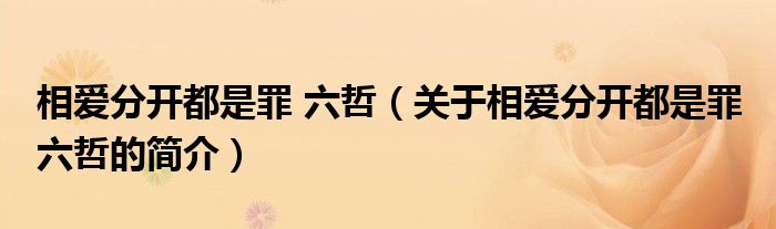 本文關于相愛分開都是罪 六哲的簡介就講解完畢,希望對大家有所幫助。