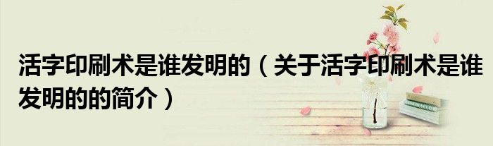 本文關于活字印刷術是誰發明的的簡介就講解完畢,希望對大家有所幫助。