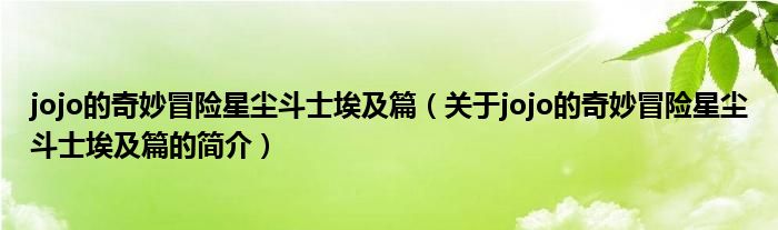 大家好,jojo的奇妙冒險星塵斗士埃及篇,關于jojo的奇妙冒險星塵斗士埃及篇的簡介很多人還不知道,現在讓我們一起來看看吧!
