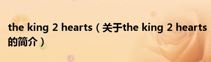 本文關(guān)于the king 2 hearts的簡介就講解完畢,希望對大家有所幫助。