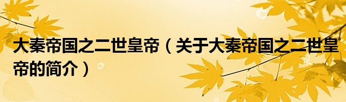 本文關(guān)于大秦帝國之二世皇帝的簡介就講解完畢,希望對大家有所幫助。