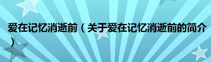 本文關于愛在記憶消逝前的簡介就講解完畢,希望對大家有所幫助。