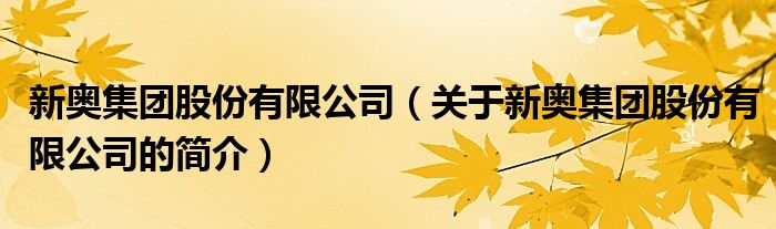 本文關于新奧集團股份有限公司的簡介就講解完畢,希望對大家有所幫助。