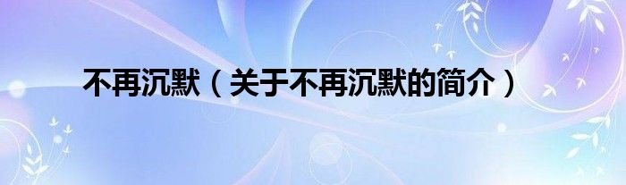 本文關于不再沉默的簡介就講解完畢,希望對大家有所幫助。