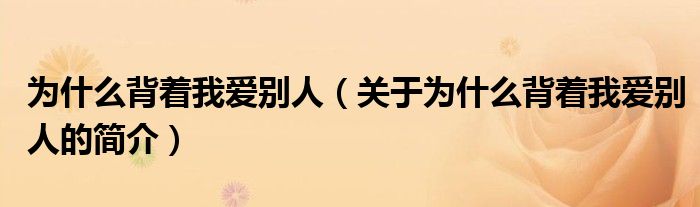 大家好,為什么背著我愛別人,關于為什么背著我愛別人的簡介很多人還不知道,現在讓我們一起來看看吧!