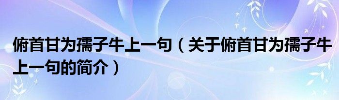 大家好,俯首甘為孺子牛上一句,關于俯首甘為孺子牛上一句的簡介很多人還不知道,現在讓我們一起來看看吧!