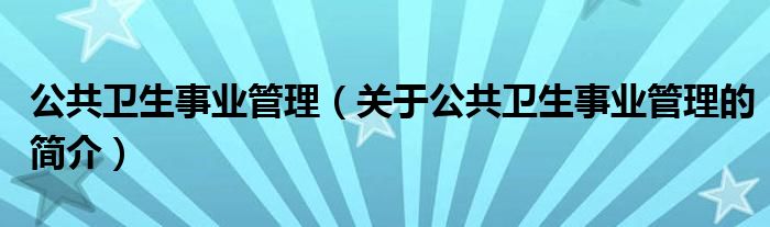 本文關于公共衛生事業管理的簡介就講解完畢,希望對大家有所幫助。