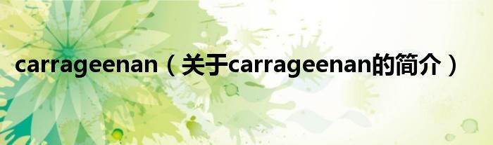 大家好,carrageenan,關于carrageenan的簡介很多人還不知道,現在讓我們一起來看看吧!