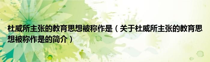 本文關(guān)于杜威所主張的教育思想被稱作是的簡(jiǎn)介就講解完畢,希望對(duì)大家有所幫助。