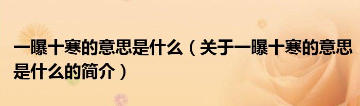 本文關于一曝十寒的意思是什么的簡介就講解完畢,希望對大家有所幫助。