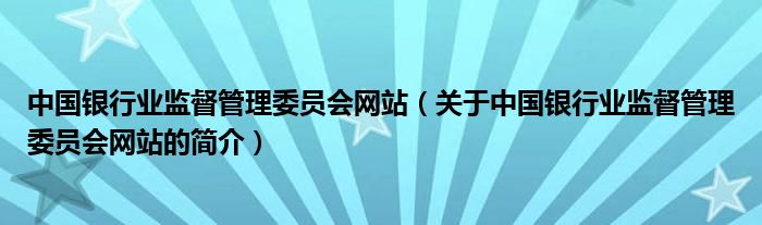 本文關(guān)于中國銀行業(yè)監(jiān)督管理委員會(huì)網(wǎng)站的簡(jiǎn)介就講解完畢,希望對(duì)大家有所幫助。