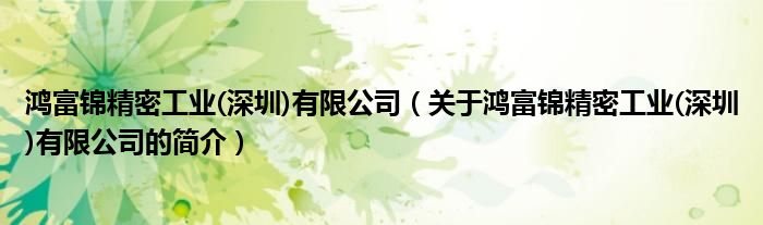 本文關于鴻富錦精密工業(深圳)有限公司的簡介就講解完畢,希望對大家有所幫助。