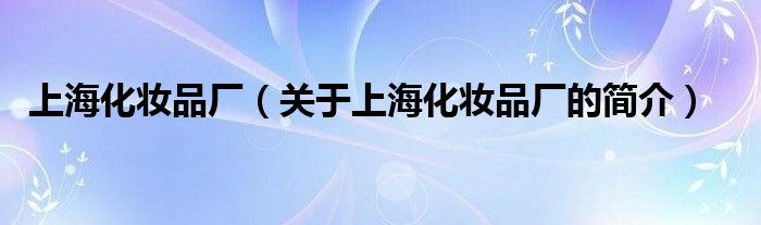 本文關于上海化妝品廠的簡介就講解完畢,希望對大家有所幫助。