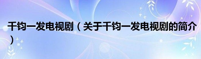 大家好,千鈞一發電視劇,關于千鈞一發電視劇的簡介很多人還不知道,現在讓我們一起來看看吧!