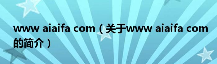 大家好,www aiaifa com,關于www aiaifa com的簡介很多人還不知道,現在讓我們一起來看看吧!