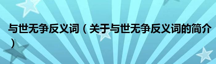 本文關于與世無爭反義詞的簡介就講解完畢,希望對大家有所幫助。