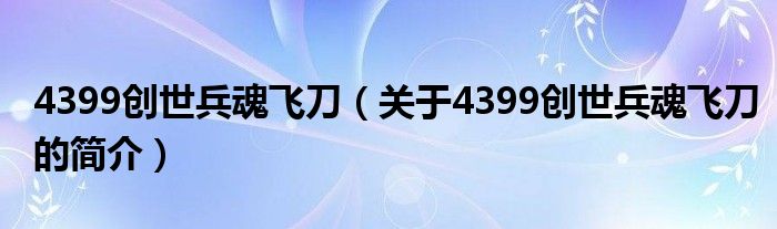 本文關于4399創世兵魂飛刀的簡介就講解完畢,希望對大家有所幫助。