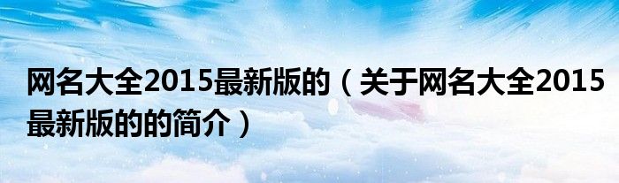 本文關于網名大全2015最新版的的簡介就講解完畢,希望對大家有所幫助。