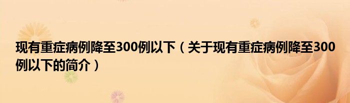 本文關于現有重癥病例降至300例以下的簡介就講解完畢,希望對大家有所幫助。