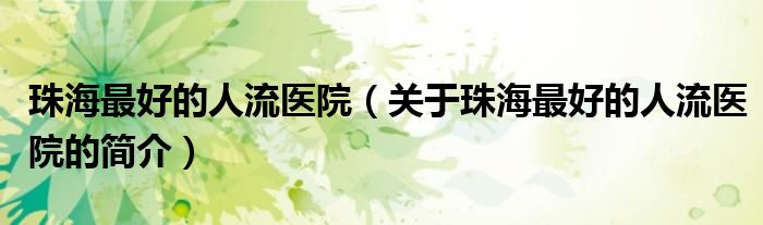 本文關于珠海最好的人流醫院的簡介就講解完畢,希望對大家有所幫助。