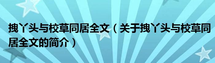 大家好,拽丫頭與校草同居全文,關于拽丫頭與校草同居全文的簡介很多人還不知道,現在讓我們一起來看看吧!