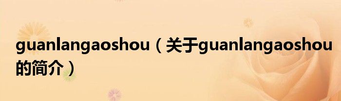本文關于guanlangaoshou的簡介就講解完畢,希望對大家有所幫助。