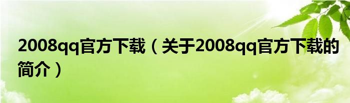 本文關于2008qq官方下載的簡介就講解完畢,希望對大家有所幫助。