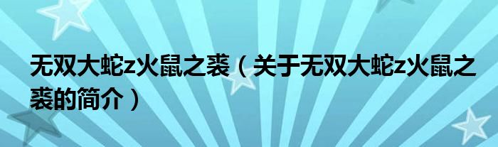 本文關于無雙大蛇z火鼠之裘的簡介就講解完畢,希望對大家有所幫助。