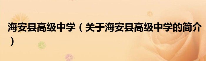 大家好,海安縣高級中學,關于海安縣高級中學的簡介很多人還不知道,現在讓我們一起來看看吧!