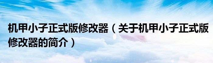 大家好,機甲小子正式版修改器,關于機甲小子正式版修改器的簡介很多人還不知道,現在讓我們一起來看看吧!
