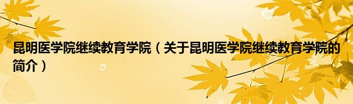 本文關于昆明醫學院繼續教育學院的簡介就講解完畢,希望對大家有所幫助。