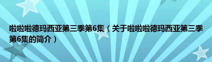 本文關(guān)于啦啦啦德瑪西亞第三季第6集的簡(jiǎn)介就講解完畢,希望對(duì)大家有所幫助。