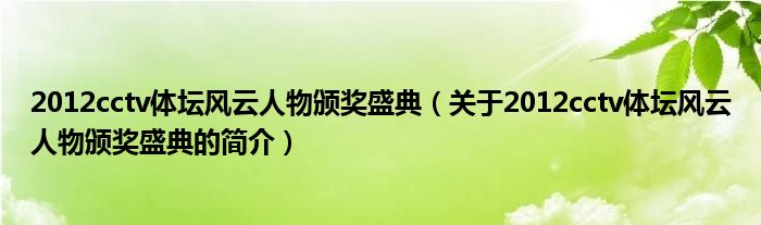 本文關于2012cctv體壇風云人物頒獎盛典的簡介就講解完畢,希望對大家有所幫助。