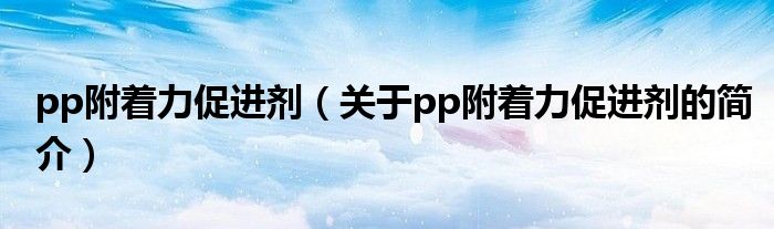 本文關于pp附著力促進劑的簡介就講解完畢,希望對大家有所幫助。