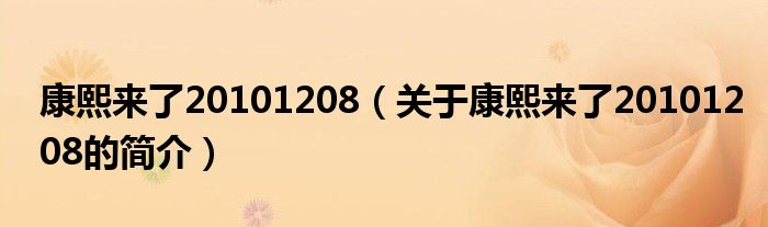 大家好,康熙來了20101208,關(guān)于康熙來了20101208的簡介很多人還不知道,現(xiàn)在讓我們一起來看看吧!