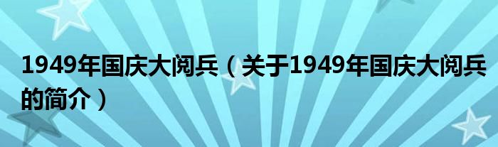 本文關于1949年國慶大閱兵的簡介就講解完畢,希望對大家有所幫助。