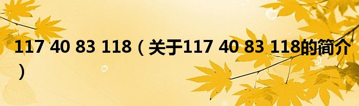 大家好,117 40 83 118,關(guān)于117 40 83 118的簡(jiǎn)介很多人還不知道,現(xiàn)在讓我們一起來(lái)看看吧!
