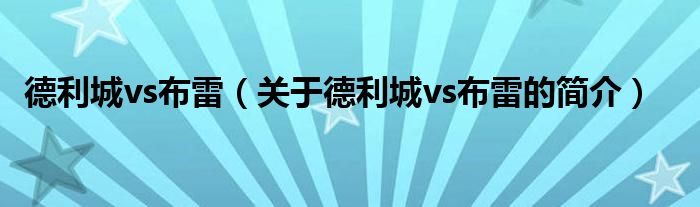 本文關(guān)于德利城vs布雷的簡(jiǎn)介就講解完畢,希望對(duì)大家有所幫助。